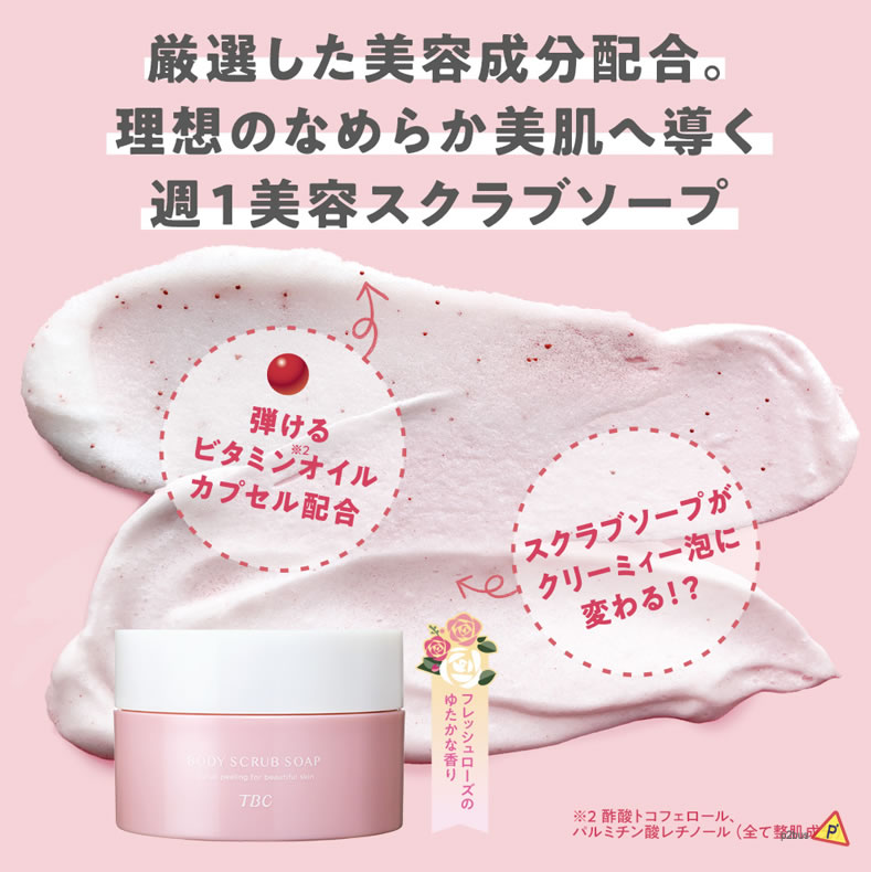 TBC Body Scrub Soap: A luxurious exfoliator that seeks to smooth the appearance of skin, and nourish the body with moisture.