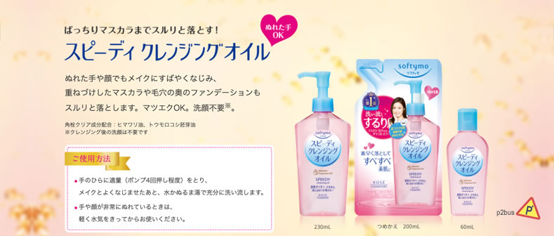 Kose Softymo Speedy Cleansing Oil: Infused with an exclusive nourishing botanical oil complex (olive oil, jojoba oil, sesame oil, safflower oil and shea butter), the facial cleanser effectively melts away stubborn makeup and impurities. The cleanser oil glides effortlessly across the skin and expertly dissolves even stubborn makeup, without over-drying or disturbing the skin's natural moisture balance. It's also great for all skin types and can be used on wet or dry skin.