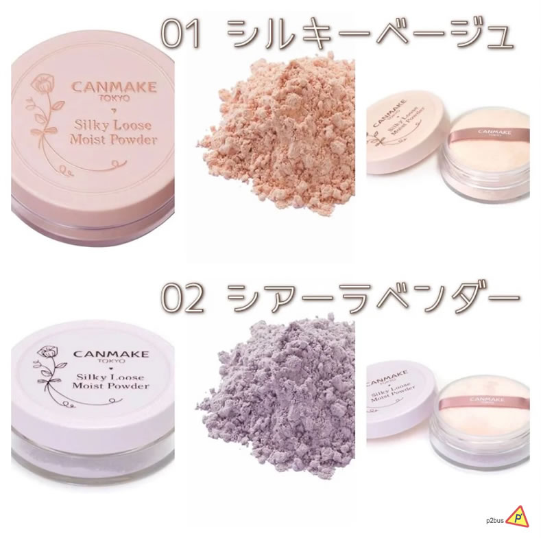 Canmake Silky Loose Moist Powder: From the moment you apply it, the fine powder seems to melt into your skin, leaving skin with a finish as smooth as if it were swathed in a silk veil. The soft, light texture provides a bare skin finish.