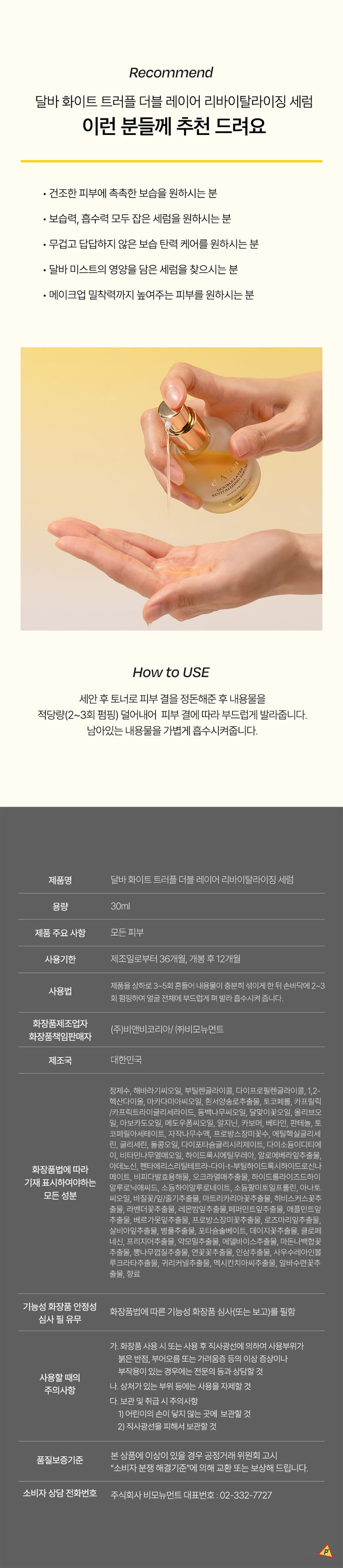 Formulated with premium white truffles which are carefully extracted from Piedmont, Italy, infused with Tocopherol(vitamin E) make d'Alba's signature ingredient Trufferol, which is rich in antioxidants. Added with plant-based organic substances such as sunflower seed oil, macadamia nut oil, avocado oil, etc. to provide deep hydration and absorb deep into the pores. The patented substances okra extract and hydrolyzed hyaluronic acid keep skin tissues moist and hydrated.