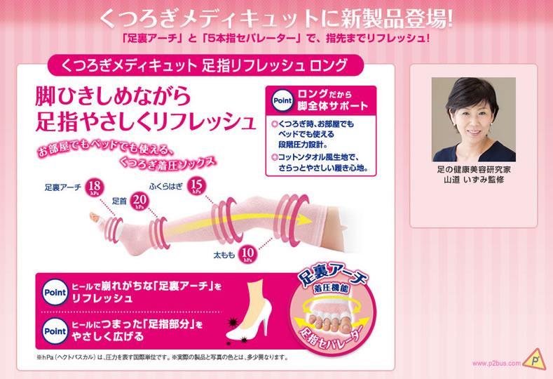 SCHOLL MediQtto Sleeping Socks is the glad tidings to those who long for beautiful legs! Modern women are always worried by swollen, fatigue legs as they are required to stand or sit for a long time while working. What’s more, inappropriate posture in daily life even worsens the problem as it may lead to poor blood circulation. Scholl MediQtto Sleeping Socks is an innovative slimming tool that relieves leg dropsy during nighttime for a perfect leg shape! Grounding on the ergonomic theory, Dr. Scholl MediQtto Sleeping Socks are endowed with partial pressure system in order to improve blood circulation. Dropsy is therefore alleviated while fatigue is relieved. The line of legs is redefined. In the following morning, your legs feel light and relaxed. The test launched by the Japan Nagoya University proved that it works to slim up your legs by 4mm in average. As the open-toe socks are made of high quality and highly resilient garment, you do not feel sultry or annoyed while sleeping. The fancy blend of lavender color and light pink fascinates every gal! Dr. Scholl MediQtto Sleeping Socks is the hottest item in Japan. It made a remarkable sales volume in last September: 300000 pairs were sold!